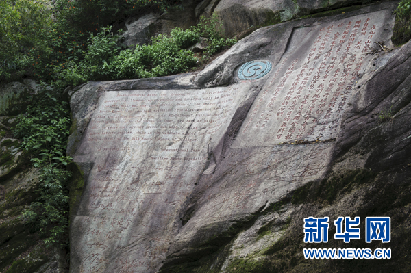 ??? 走進那段記錄在石壁上的海絲歷史聯(lián)合國教科文組織“海絲”考察隊于1991年觀摩祈風(fēng)石刻,認(rèn)定此為宋元時期海上絲綢之路起點的文物佐證,并做中英文新刻(5月8日攝)。 26年來,今年65歲的文物管理所原所長胡家其老人已經(jīng)記不得多少次向人們講述九日山作為宋元時期海上絲綢之路起點的歷史,但他從不言倦。福建泉州豐州鎮(zhèn)九日山因“山中無石不刻字”而與眾不同。這座海拔只有一百多米的小山現(xiàn)存古代摩崖石刻77方,其中宋代石刻61方。這61方石刻中又有10方直接與海上絲綢之路有關(guān),記錄了公元1174年至1266年期間11次官辦祈風(fēng)儀式。新華社記者 姜克紅 攝