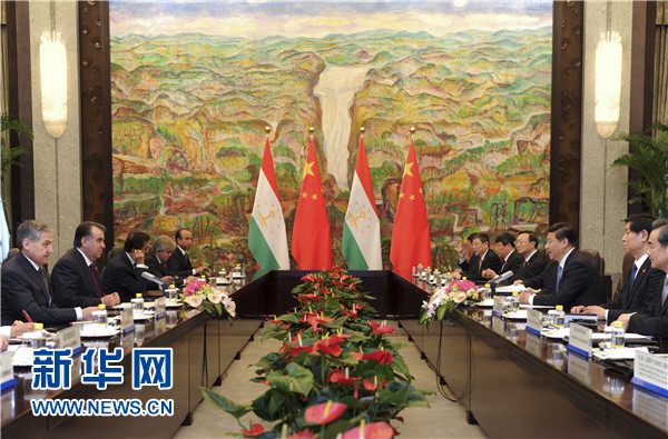 ????習(xí)近平表示,中方始終視塔吉克斯坦為好鄰居、好朋友、好伙伴,支持塔吉克斯坦維護(hù)國家穩(wěn)定、促進(jìn)經(jīng)濟(jì)發(fā)展、提高人民生活水平。去年中塔建立戰(zhàn)略伙伴關(guān)系以來,兩國關(guān)系發(fā)展進(jìn)入新階段,各領(lǐng)域合作勢頭很好。雙方要加緊制定《中塔2015-2020年戰(zhàn)略伙伴關(guān)系合作綱要》,如期推進(jìn)中國-中亞天然氣管道工程以及塔方輸變電線路改造、交通和邊境口岸基礎(chǔ)設(shè)施建設(shè)、工業(yè)園、農(nóng)業(yè)技術(shù)示范園區(qū)等合作項目,促進(jìn)文化、教育、旅游合作,加強(qiáng)執(zhí)法安全和防務(wù)合作,共同打擊“三股勢力”、販毒和跨國犯罪。中方全力支持和配合塔方辦好今年9月舉行的上海合作組織杜尚別峰會,推動本組織向團(tuán)結(jié)更緊密、合作更務(wù)實、行動更有效的方向發(fā)展。
