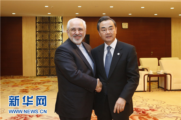 ????5月21日,中國外交部長王毅在上海會見陪同伊朗總統(tǒng)魯哈尼訪華的伊朗外長扎里夫。 新華社記者 張玉薇 攝