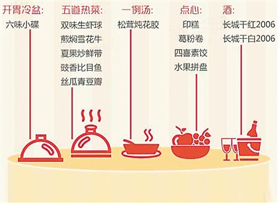 歡迎晚宴上共出現(xiàn)一個冷盤、五道熱菜,此外還有點心、水果、甜品等。蘇德興介紹,其中冷盤的食材基本都是上海本地原產(chǎn),烹飪用油來自婺源高山上自然生長的山茶,口味則凸顯江南的地方特色。上海市食品藥品監(jiān)督管理局更進(jìn)一步透露,國宴的原材料“沒有特供,全是從超市買的”。