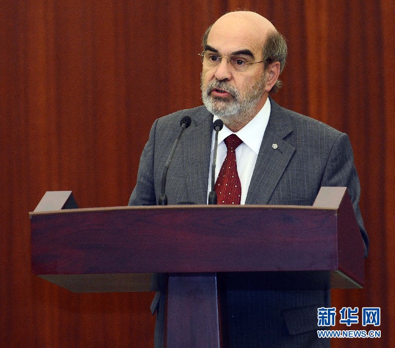 ????6月6日,在烏茲別克斯坦首都塔什干國際會議宮,聯(lián)合國糧農(nóng)組織總干事若澤·格拉齊亞諾·達(dá)席爾瓦在講話。(沙達(dá)提 攝)