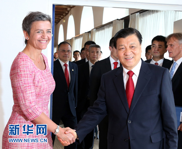 ??? 6月11日,正在丹麥進行正式訪問的中共中央政治局常委、中央書記處書記劉云山在哥本哈根會見丹麥經(jīng)濟內(nèi)政大臣瑪格麗特·韋斯塔格。新華社記者姚大偉攝