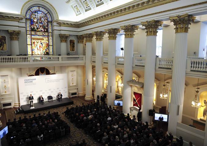 ??? 【英兩家頂級智庫搭臺 傾聽中國總理聲音】18日,李克強(qiáng)在擁有悠久歷史、金碧輝煌的倫敦金融城市長官邸,面向300多位智庫成員發(fā)表了題為《共建包容發(fā)展的美好世界》的演講。皇家國際事務(wù)研究所和國際戰(zhàn)略研究所同為全球頂級智庫。此間輿論認(rèn)為,由兩家研究所共同舉辦同一場演講極為罕見。