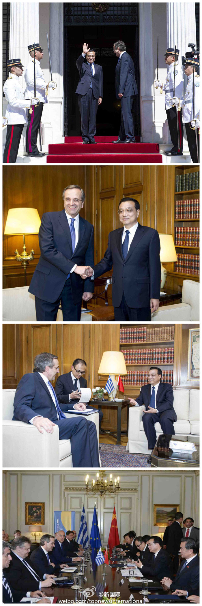 ????新華網(wǎng)北京6月20日電 據(jù)新華社“新國際”微博報道,李克強(qiáng)總理在當(dāng)?shù)貢r間19日下午在雅典同希臘總理薩馬拉斯舉行會談,雙方就進(jìn)一步推進(jìn)中希關(guān)系發(fā)展,拓展務(wù)實合作深入交換意見,達(dá)成廣泛共識。李克強(qiáng)表示,中國愿進(jìn)一步鞏固中希政治互信,擴(kuò)大務(wù)實合作,將兩國全面戰(zhàn)略伙伴關(guān)系提升到新的更高水平。
