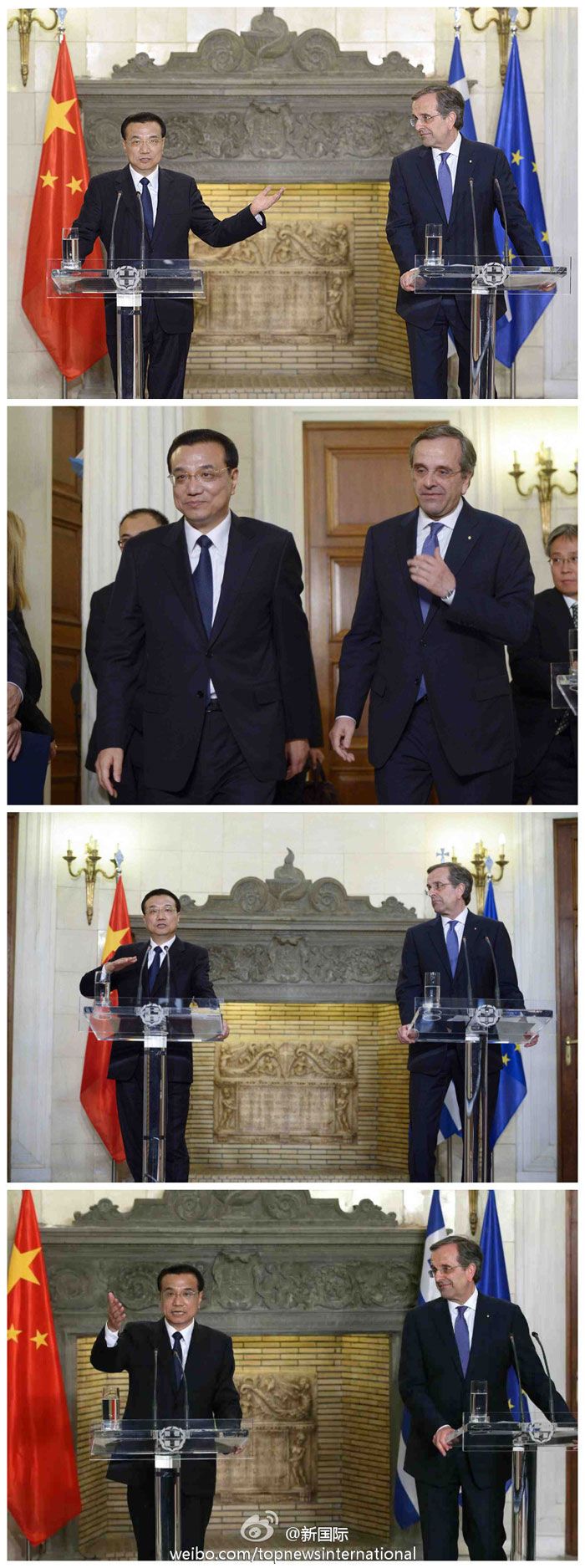 ??? 新華網(wǎng)北京6月20日電 據(jù)新華社“新國(guó)際”微博報(bào)道,19日,李克強(qiáng)與希臘總理共見記者談及中希關(guān)系時(shí)說,作為東西方文明兩大古國(guó),都對(duì)人類文明做出過特殊貢獻(xiàn)。兩國(guó)人民又有著深厚情誼。希臘為中國(guó)從利比亞撤僑提供了寶貴幫助;中國(guó)為希臘克服主權(quán)債務(wù)危機(jī)及時(shí)施以援手。中希兩國(guó)關(guān)系義字當(dāng)頭、互利雙贏。
