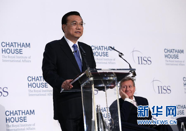 ??? 6月18日,國務(wù)院總理李克強(qiáng)在倫敦金融城市長官邸面向英國皇家國際問題研究所和國際戰(zhàn)略研究所兩大智庫發(fā)表題為《共建包容發(fā)展的美好世界》的演講?!⌒氯A社記者 龐興雷 攝