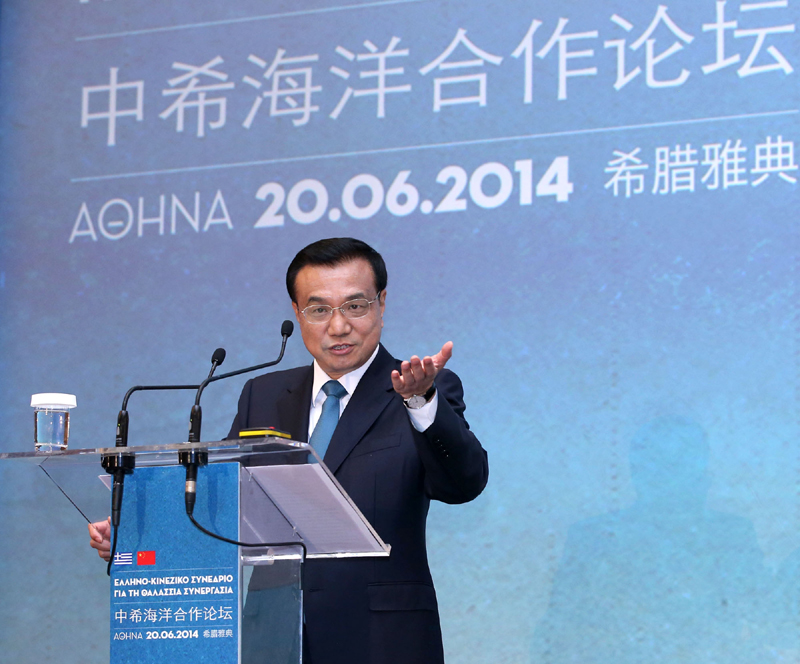 ??? 李克強總理20日在中希海洋合作論壇上說,大海有潮起潮落,國家經(jīng)濟發(fā)展也有起有伏,建設現(xiàn)代海洋文明同樣需要有勇氣去乘風破浪。大海可納百川,國與國之間也應相互包容、開展對話、交流互鑒。中國愿與希臘攜手同行,讓古老的希臘文明與中華文明綻放時代光彩。
