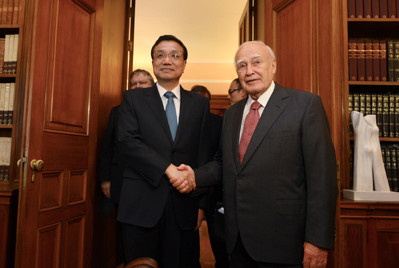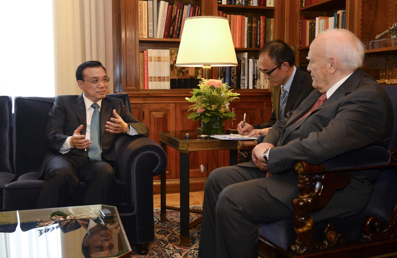 【李克強(qiáng):中國將希臘視為在歐盟的好朋友和好伙伴】李克強(qiáng)總理當(dāng)?shù)貢r(shí)間20日下午在雅典總統(tǒng)府會見希臘總統(tǒng)帕普利亞斯。李克強(qiáng)表示,中希傳統(tǒng)友誼深厚,互信日益鞏固,合作不斷深化。中國將希臘視為在歐盟的好朋友和好伙伴,希望希臘作為歐盟輪值主席國,為促進(jìn)中歐關(guān)系發(fā)展發(fā)揮更大作用。