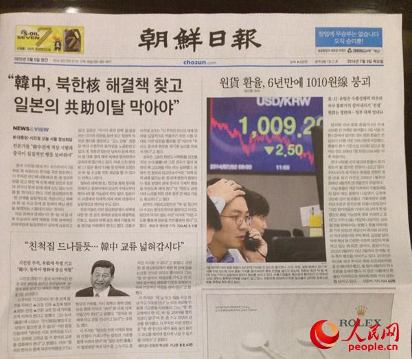 ??? 韓國《朝鮮日報(bào)》在頭版顯著位置刊發(fā)習(xí)近平主席署名文章《中韓自古好鄰居 兩國友好風(fēng)好正揚(yáng)帆》 金慧廷 攝