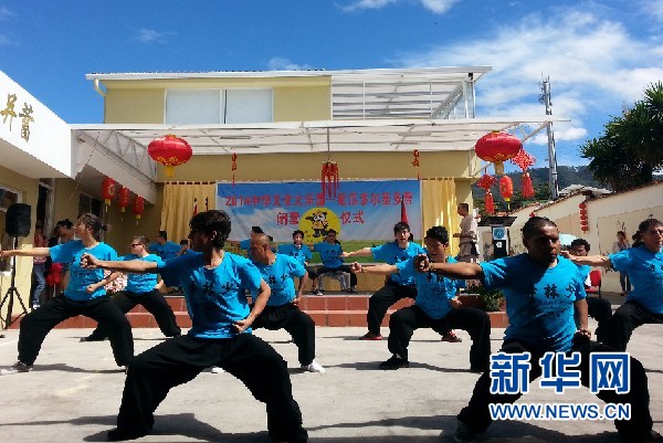 ????雖然此次活動(dòng)的主要對象是孩子們,但也有不少家長送孩子來上課后,自己也留下來學(xué)書法學(xué)武術(shù)的情況,營里就有不少爺孫、父子組合一起上課。厄華人華僑聯(lián)合會(huì)永久名譽(yù)會(huì)長沈達(dá)演老先生年近80歲,堅(jiān)持讓夫人陪同前來夏令營看一看,他激動(dòng)的說在這里生活了大半輩子,還是第一次看到國家派出教師團(tuán)來教授孩子們學(xué)習(xí)中華文化,感受到了這是祖國對我們?nèi)A人華僑的關(guān)懷。