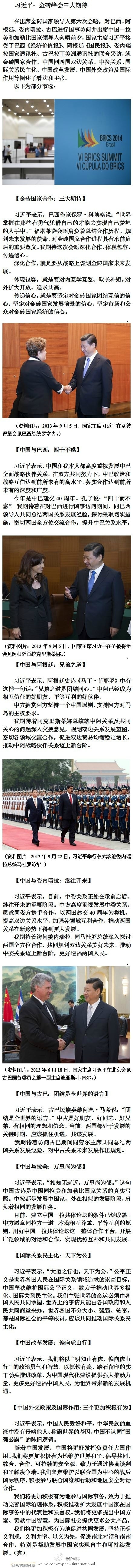 ???? 新華網(wǎng)北京7月15日電 據(jù)新華社“新國(guó)際”微博報(bào)道,在出席金磚國(guó)家領(lǐng)導(dǎo)人第六次會(huì)晤,對(duì)巴西、阿根廷、委內(nèi)瑞拉、古巴進(jìn)行國(guó)事訪(fǎng)問(wèn)并出席中國(guó)-拉美和加勒比國(guó)家領(lǐng)導(dǎo)人會(huì)晤前夕,國(guó)家主席習(xí)近平接受了巴西《經(jīng)濟(jì)價(jià)值報(bào)》、阿根廷《國(guó)民報(bào)》、委內(nèi)瑞拉國(guó)家通訊社、古巴拉丁美洲通訊社的聯(lián)合采訪(fǎng)。精彩內(nèi)容請(qǐng)點(diǎn)長(zhǎng)微博。?