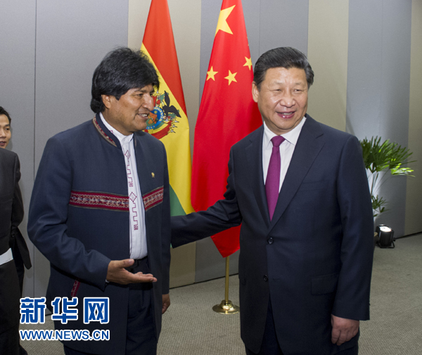 ????習(xí)近平積極評價玻利維亞為中拉關(guān)系發(fā)展發(fā)揮積極作用,表示相信中拉雙方將以即將舉行的中拉領(lǐng)導(dǎo)人會晤為契機,通過中拉論壇平臺推動中拉關(guān)系實現(xiàn)新發(fā)展,樹立南南合作新典范。