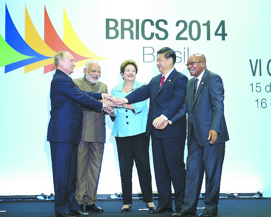 ??“大鵬之動(dòng),非一羽之輕;騏驥之速,非一足之力?!边@句被中國(guó)國(guó)家主席習(xí)近平15日用作對(duì)金磚國(guó)家合作表達(dá)信心的古語,當(dāng)天便得到完美的詮釋:金磚國(guó)家宣布創(chuàng)立金磚國(guó)家新開發(fā)銀行,總部設(shè)在中國(guó)上海,行長(zhǎng)來自印度。從提出到落實(shí)不過一年,“平等參與,大家都有份”,金磚銀行設(shè)立的速度和方式讓西方看笑話的人不適應(yīng)。印度媒體稱,“金磚國(guó)家”這個(gè)概念自13年前出現(xiàn)起就被西方懷疑和輕視,如今,金磚國(guó)家不但相互頻繁走動(dòng),而且“已站穩(wěn)腳跟開始走強(qiáng)了”。