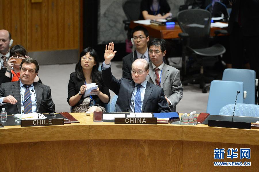 ??? 7月21日,在紐約聯(lián)合國總部,中國常駐聯(lián)合國代表劉結(jié)一(中)參加安理會就決議草案進行的表決。聯(lián)合國安理會21日通過決議,強烈譴責馬來西亞航空公司MH17航班墜毀事件,同時敦促各方充分配合對這一事件的國際調(diào)查。新華社記者牛曉雷攝