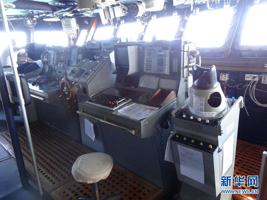 ????“路易吉·杜蘭德·德拉佩訥號”驅(qū)逐艦控制室。新華網(wǎng)記者 周喆 攝