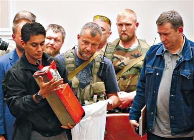 22日,烏克蘭頓涅茨克,烏克蘭民間武裝將MH17的兩個(gè)黑匣子移交給馬方調(diào)查組。馬方調(diào)查人員稱,黑匣子“只有輕微損傷,基本完整無缺”。