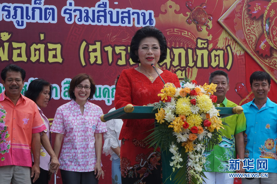 ????8月12日,泰國(guó)普吉府舉辦中國(guó)傳統(tǒng)的“中元普渡”活動(dòng),以普渡孤魂,表達(dá)仁愛和孝道思想。該活動(dòng)在普吉已有150多年的歷史,每逢中國(guó)農(nóng)歷7月,當(dāng)?shù)厝A人便會(huì)舉行祭祀儀式,用面粉和糖制成大小不一的紅色面團(tuán),裝飾成烏龜形狀,既表達(dá)了對(duì)于祖先的懷念,還傳遞了對(duì)于全家人健康長(zhǎng)壽的祝福。圖為普吉府普吉市市長(zhǎng)頌齋(中)在活動(dòng)開幕式上。新華網(wǎng)記者 楊云燕 攝