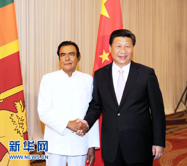 9月17日,國(guó)家主席習(xí)近平在科倫坡會(huì)見(jiàn)斯里蘭卡總理賈亞拉特納。 新華社記者 謝環(huán)馳 攝