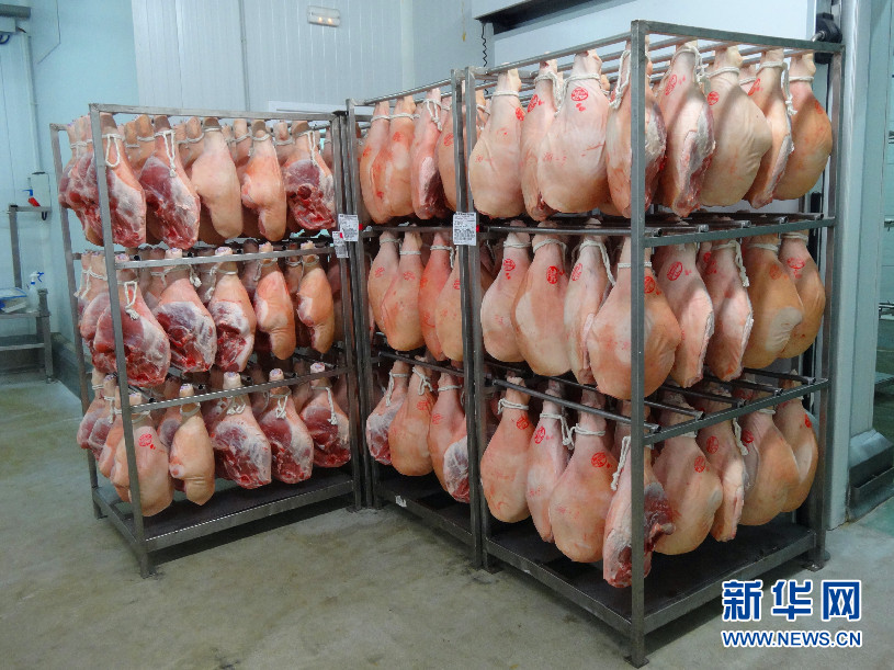????“因特珀?duì)柨恕惫镜囊晃回?fù)責(zé)人何塞?拉蒙(Jose Ramon)先生向記者介紹說,為了保證產(chǎn)品的質(zhì)量,根據(jù)歐盟食品安全法規(guī),西班牙生豬的飼料、喂養(yǎng)、處理、配送都會(huì)受到嚴(yán)格的監(jiān)控。比如“卡薩德蒙特”公司,送到這里的每條生豬腿都有自己的編號(hào),并且這個(gè)編號(hào)會(huì)跟隨制作火腿的整個(gè)過程,這樣最終出現(xiàn)在市場(chǎng)上的每一件火腿產(chǎn)品,都可以追溯其原料來源和加工過程。