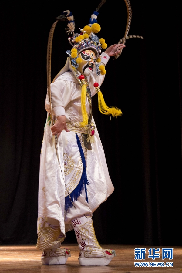來(lái)自中南民族大學(xué)的演員在臺(tái)上表演。新華網(wǎng)發(fā) Xesco攝