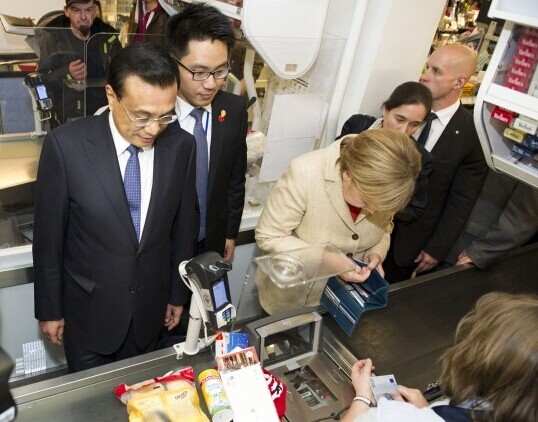 結(jié)賬時(shí),默克爾讓李克強(qiáng)總理先走,自己停下來付錢,隨后轉(zhuǎn)身與他一起離開。兩位總理結(jié)束了短暫的超市之行,到酒店準(zhǔn)備出席第七屆中德經(jīng)濟(jì)技術(shù)合作論壇。