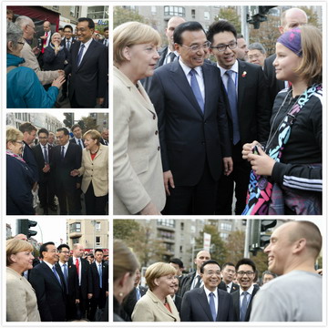 事件:李總理和默總理共同乘車前往出席中德經(jīng)濟(jì)技術(shù)論壇,途中他們臨時(shí)停車,與在街頭的德國民眾親切交流互動(dòng)。