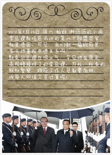 2013年3月15日,李克強當(dāng)選國務(wù)院總理。默克爾是第一位給他打來祝賀電話的外國領(lǐng)導(dǎo)人。真是感動,太有心了!