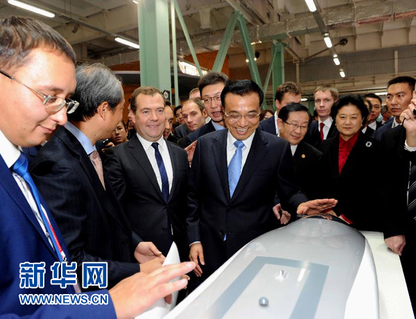 ??? 10月14日,國務(wù)院總理李克強(qiáng)應(yīng)邀與俄羅斯總理梅德韋杰夫共同參觀“開放式創(chuàng)新”莫斯科國際創(chuàng)新發(fā)展論壇展覽。 新華社記者 饒愛民 攝