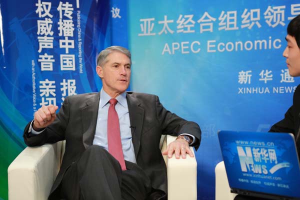 ????新華網(wǎng)北京11月11日電(記者 向博)美國卡特彼勒公司總裁芮德華9日在出席亞太經(jīng)合組織(APEC)工商領(lǐng)導人峰會期間接受新華網(wǎng)記者專訪,暢談基礎(chǔ)建設和工程機械行業(yè)在亞太地區(qū)的發(fā)展以及中國市場布局等話題。