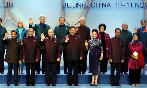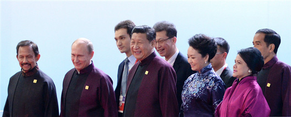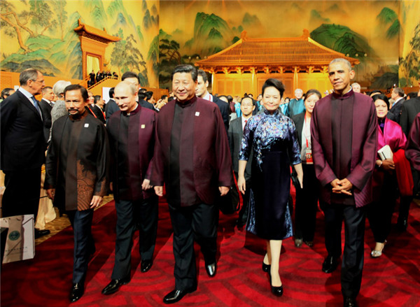 ????18時許,與會貴賓穿著為本次會議專門設計的特色中式服裝陸續(xù)抵達。習主席說,貴賓們都穿著中國式服裝,讓大家更感親近,就像到鄰居家串門,來朋友家敘舊一樣。