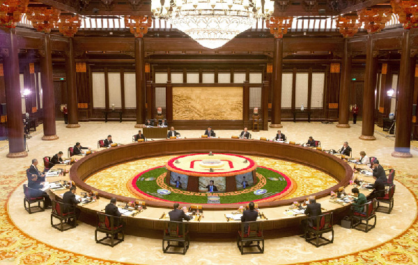 上午9時30分許,亞太經(jīng)合組織領導人非正式會議開始在雁棲湖舉行。