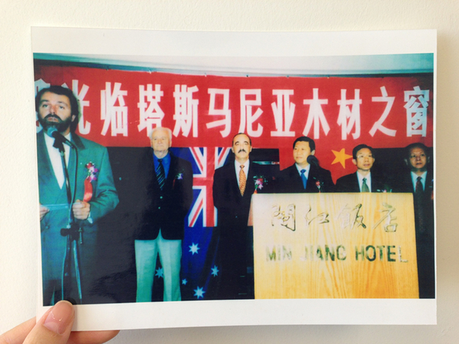 ????這是1999年習(xí)近平任福建省代省長(zhǎng)時(shí)出席塔斯馬尼亞之窗木材交易會(huì)時(shí)的照片(左三為吉姆·培根州長(zhǎng)),記錄下當(dāng)年兩位“父母官”為地方經(jīng)貿(mào)合作而出力的一幕。自我表?yè)P(yáng)一下,記者為尋到這張照片,可是很花了番功夫。