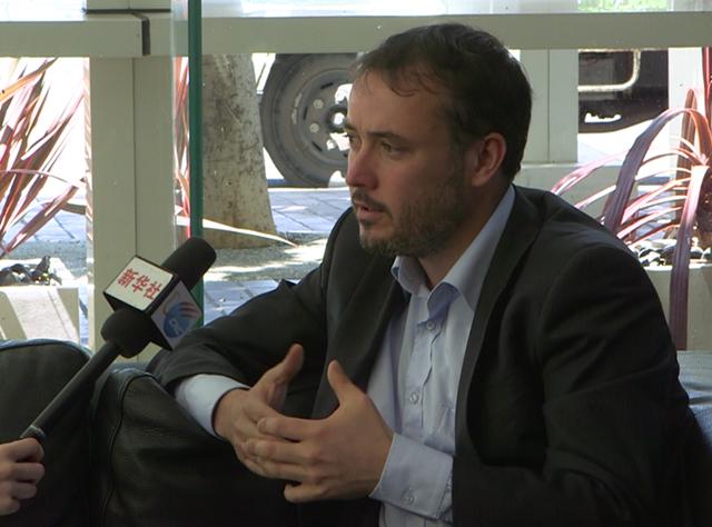2014年11月,馬克·培根接受新華社記者專訪。 新華社記者 徐儼儼 攝