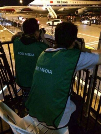 ??? 習(xí)近平主席的專(zhuān)機(jī),降落在布里斯班,已經(jīng)是當(dāng)?shù)貢r(shí)間14日晚上9點(diǎn)50左右,話說(shuō)布里斯班白天驕陽(yáng)灼人,太陽(yáng)一落山氣溫蹭蹭下降,等候?qū)C(jī)抵達(dá)的記者要是沒(méi)加件外套,就只能挨凍啦!