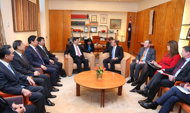 ??? 11月17日,中國國家主席習(xí)近平與澳大利亞總理阿博特在澳大利亞首都堪培拉舉行會談。新華社記者龐興雷攝