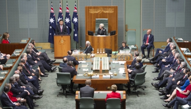 11月17日,國(guó)家主席習(xí)近平在澳大利亞聯(lián)邦議會(huì)發(fā)表題為《攜手追尋中澳發(fā)展夢(mèng)想 并肩實(shí)現(xiàn)地區(qū)繁榮穩(wěn)定》的重要演講。新華社記者謝環(huán)馳攝