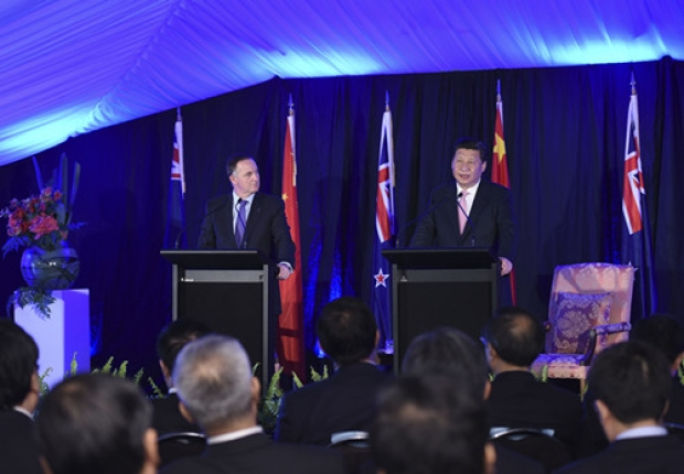 圖為習(xí)近平主席和新西蘭總理約翰·基會(huì)談后共同會(huì)見(jiàn)記者(攝影 李學(xué)仁)