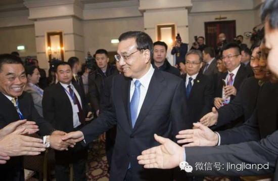 李克強(qiáng)參加中哈企業(yè)家委員會(huì)會(huì)議后,離開會(huì)場(chǎng)時(shí)與企業(yè)家們握手