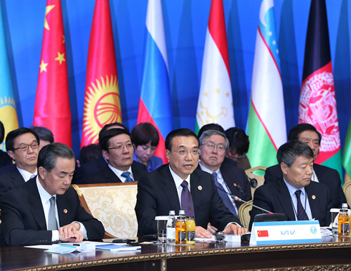 ?。ǎ玻埃保茨辏保苍拢保等?,李克強出席上海合作組織成員國政府首腦理事會第十三次會議。新華社記者龐興雷攝。)