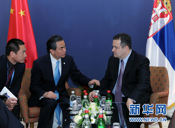 ??? 12月17日,正在陪同李克強(qiáng)總理訪問(wèn)塞爾維亞的外交部長(zhǎng)王毅應(yīng)約會(huì)見(jiàn)塞爾維亞第一副總理兼外長(zhǎng)達(dá)契奇。 新華社記者 饒愛(ài)民 攝