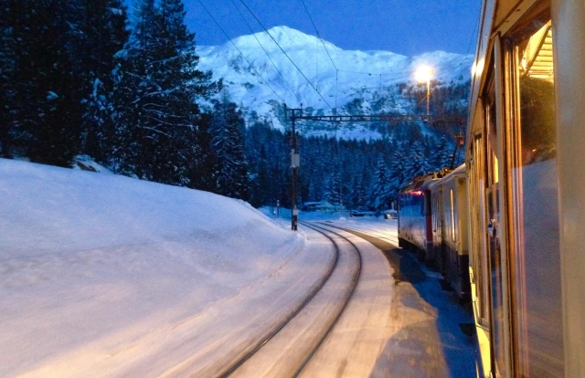 (克強總理乘坐的專列駛往達沃斯,鐵路依山上行,窗外景色怡人。攝影:李濤)