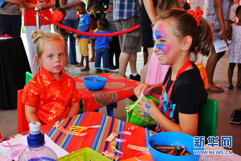南非小朋友體驗(yàn)中國(guó)文化。新華社發(fā)(郭興華攝)