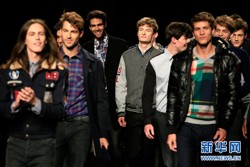 ????西班牙本土品牌Desigual3日在第15屆“080巴塞羅那時裝展”(080 Barcelona Fashion)上推出了自己的新款男裝。一水兒的型男帥哥走在T臺上,也是一道別樣的風(fēng)景。(?!ぐ屠准{ 攝)????