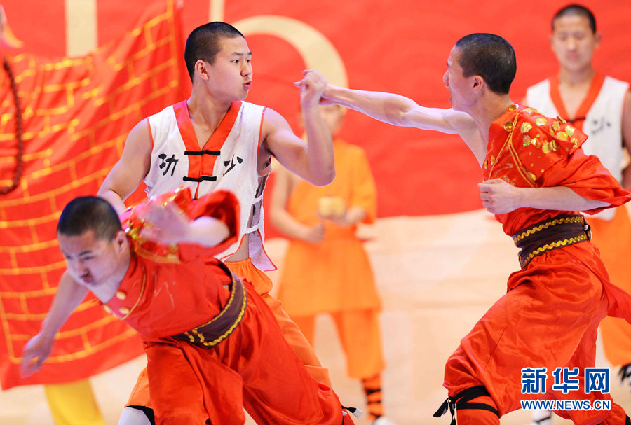 2月4日晚,在烏茲別克斯坦首都塔什干突厥宮,藝術(shù)家在表演中國(guó)武術(shù)和舞蹈。新華網(wǎng)記者 沙達(dá)提 攝