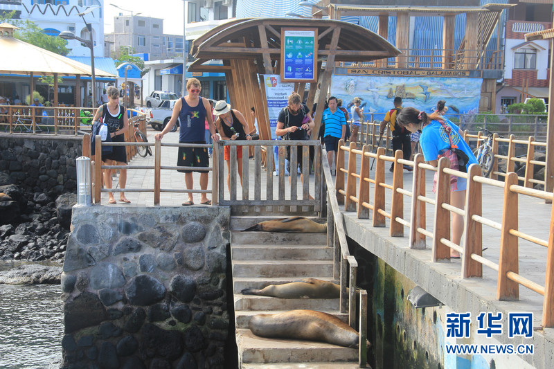 ????加拉帕戈斯群島在厄瓜多爾海岸以西約1000公里的太平洋中,總面積約8000平方公里,由19個(gè)火山島組成,從南美大陸延入太平洋,該陸地的地理環(huán)境也令人驚嘆,白色海灘和黑色火山巖石形成鮮明對(duì)比。島上現(xiàn)存一些不尋常的動(dòng)物物種,如象龜、海獅、海蜥蜴、陸蜥蜴、藍(lán)腳鰹鳥和多種類型的雀類。島上的動(dòng)物們以主人自居,并不懼怕人類,海獅就是島上的主人之一。