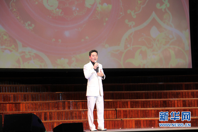 ??????? 2月25日,由中國(guó)國(guó)務(wù)院僑辦和中國(guó)海外交流協(xié)會(huì)聯(lián)合主辦的“文化中國(guó)·四海同春”在悉尼舉辦大洋洲團(tuán)的首場(chǎng)演出,歌手成方圓、中國(guó)好聲音學(xué)員李維、周深等國(guó)內(nèi)知名表演者和中澳藝術(shù)團(tuán)體為當(dāng)?shù)厝A僑華人送來新春祝福。圖為著名男高音歌唱家唐彪為現(xiàn)場(chǎng)觀眾獻(xiàn)唱《牡丹之歌》。新華社記者趙小娜攝