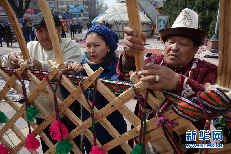 ????4月4日、5日,在阿拉木圖舉辦首界氈房節(jié)。穿著民族服裝的民間藝人搭起具有悠久傳統(tǒng)的哈薩克氈房。氈房上部為穹形,下部為圓柱形,四壁有網(wǎng)狀的木桿搭成整個氈房的骨架,外包白氈。氈房里四周是掛毯,地上是花氈地毯,上面刺著各種圖案,令人賞心悅目。哈薩克斯坦舉辦這次活動是為了將哈薩克氈房列入世界非物質(zhì)文化遺產(chǎn)名錄。(文/盧敬利 圖/葉蓮娜)