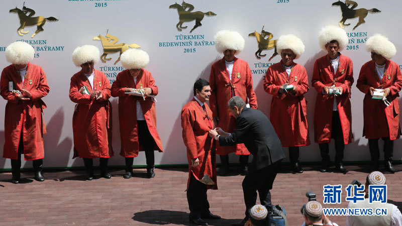 ??? “人民養(yǎng)馬師”稱號是今年3月新設(shè)立的國家獎,別爾德穆哈梅多夫是第一位獲得此稱號的人。別爾德穆哈梅多夫既是優(yōu)秀的騎手,也是賽馬運動的倡導者。他的著作《天馬飛翔》已翻譯成多種文字。