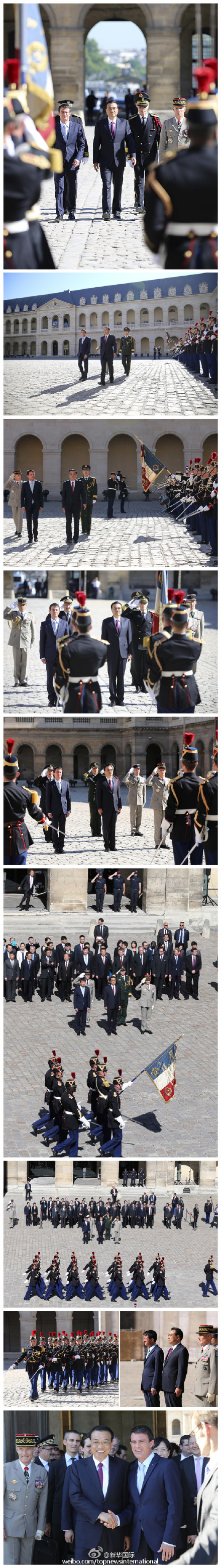 新華網(wǎng)北京7月1日電 據(jù)新華社“新華國際”微博報道,當(dāng)?shù)貢r間30日上午,法國總理瓦爾斯在榮軍院舉行隆重儀式,歡迎李克強總理訪法。明媚的陽光下,50人方陣的軍樂隊高奏中法兩國國歌,雄壯的《義勇軍進行曲》和激昂的《馬賽曲》響徹榮軍院上空。隨后,儀仗隊舉行分列式,接受中國總理李克強的檢閱。