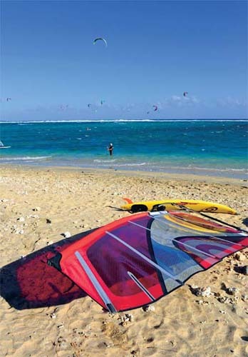 我們在留尼旺的幾天時間里風(fēng)浪都比較大,不過來到海邊卻發(fā)現(xiàn)海灘上依舊人聲鼎沸,原來好動的法國人和一些歐美游客正利用風(fēng)浪玩起了刺激的海上運動。幾米高的海浪中早已有了十多名沖浪好手相繼嘗試挑戰(zhàn),雖然他們中的大部分只是業(yè)余愛好,并非職業(yè)沖浪選手,不過一招一式也是頗為認真。靠近海岸附近的淺水區(qū)則更多是風(fēng)帆、摩托艇、皮劃艇、海浪滑板等各項水上運動的世界,對于他們來說,大風(fēng)就是運動的動力,海水就是運動的場地。一般島上的家庭都會趁著周末舉家開車來到海邊,喜歡玩水的玩水,而其他家庭成員則在沙灘上聚餐或者聊天,如此融入大自然真是瀟灑。
